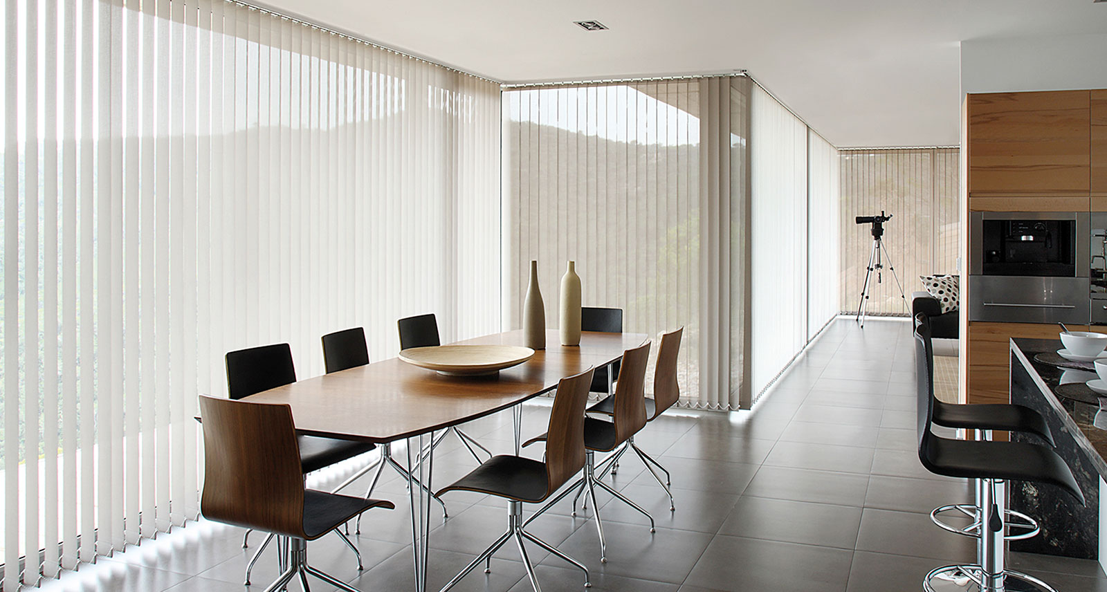 Están compuestas por tabletas de tela y PVC con caída vertical, traslapadas y suspendidas de un elegante riel.